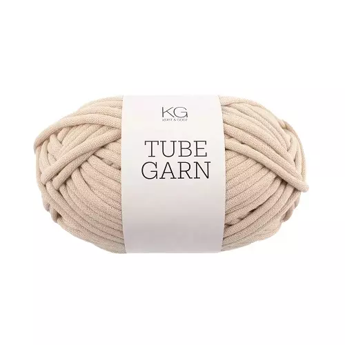 Tubegarn i myk bomullstube. og med kjerne av nylon. Passer til å hekle/strikke interiør som puter, kurver og matter osv.