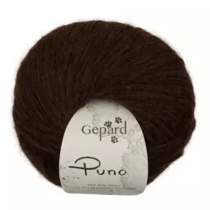 Puno består hovedsagelig af fineste bløde babyalpaca 68%, helt uden nogen stikhår og 10% fineste bløde merinould samt 22% syntet til et tyndt net, hvor blandingen af babyalpaca og merinoulden er ‘stoppet’ ned i.