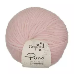 Puno består hovedsagelig af fineste bløde babyalpaca 68%, helt uden nogen stikhår og 10% fineste bløde merinould samt 22% syntet til et tyndt net, hvor blandingen af babyalpaca og merinoulden er ‘stoppet’ ned i.