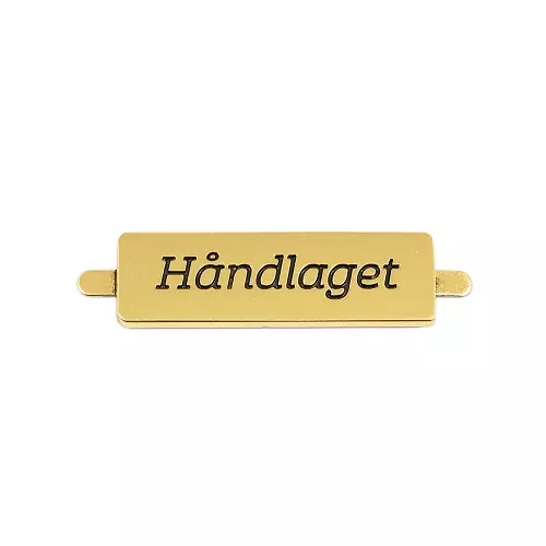 Kan brukes på vesker og stoff. Det følger med en bakplate til å feste merket med.
